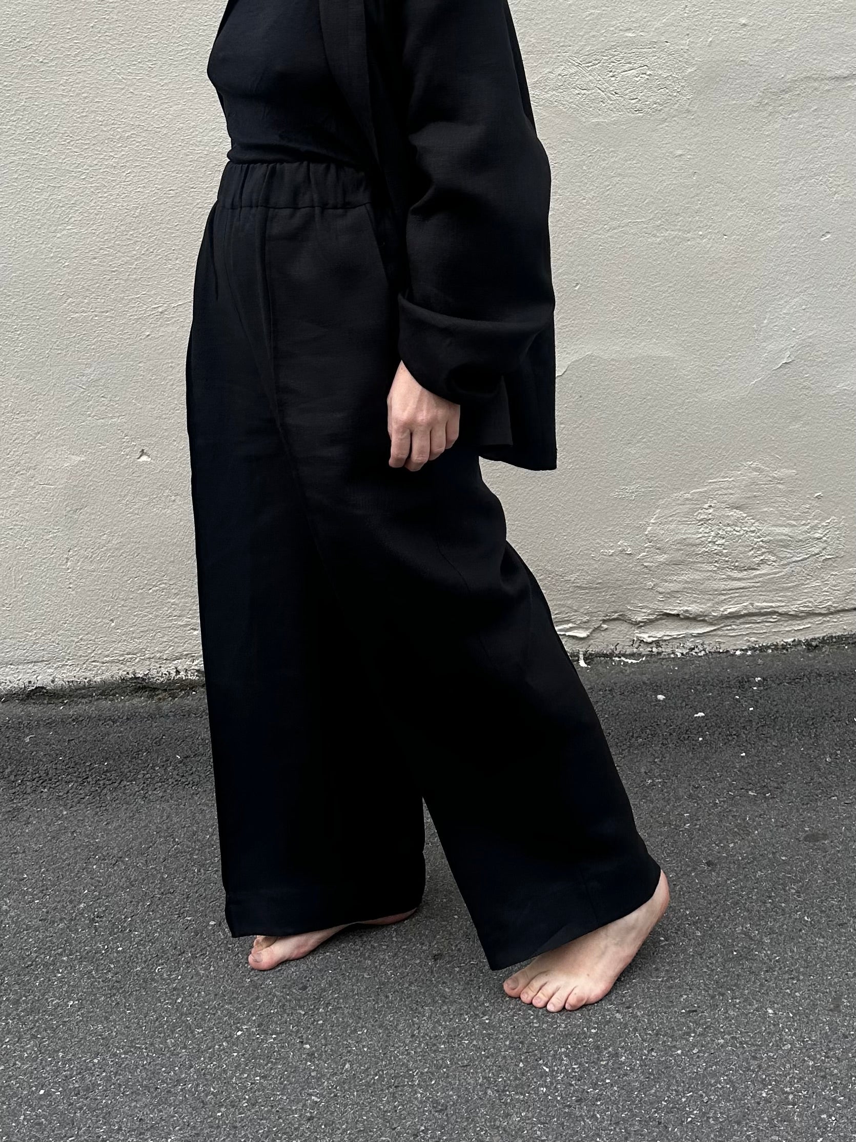 Lin kan krympe opp til 5% ved vask. Ved å forsiktig strekke plagget mens det er fuktig kan du gjenopprette noe av lengden.