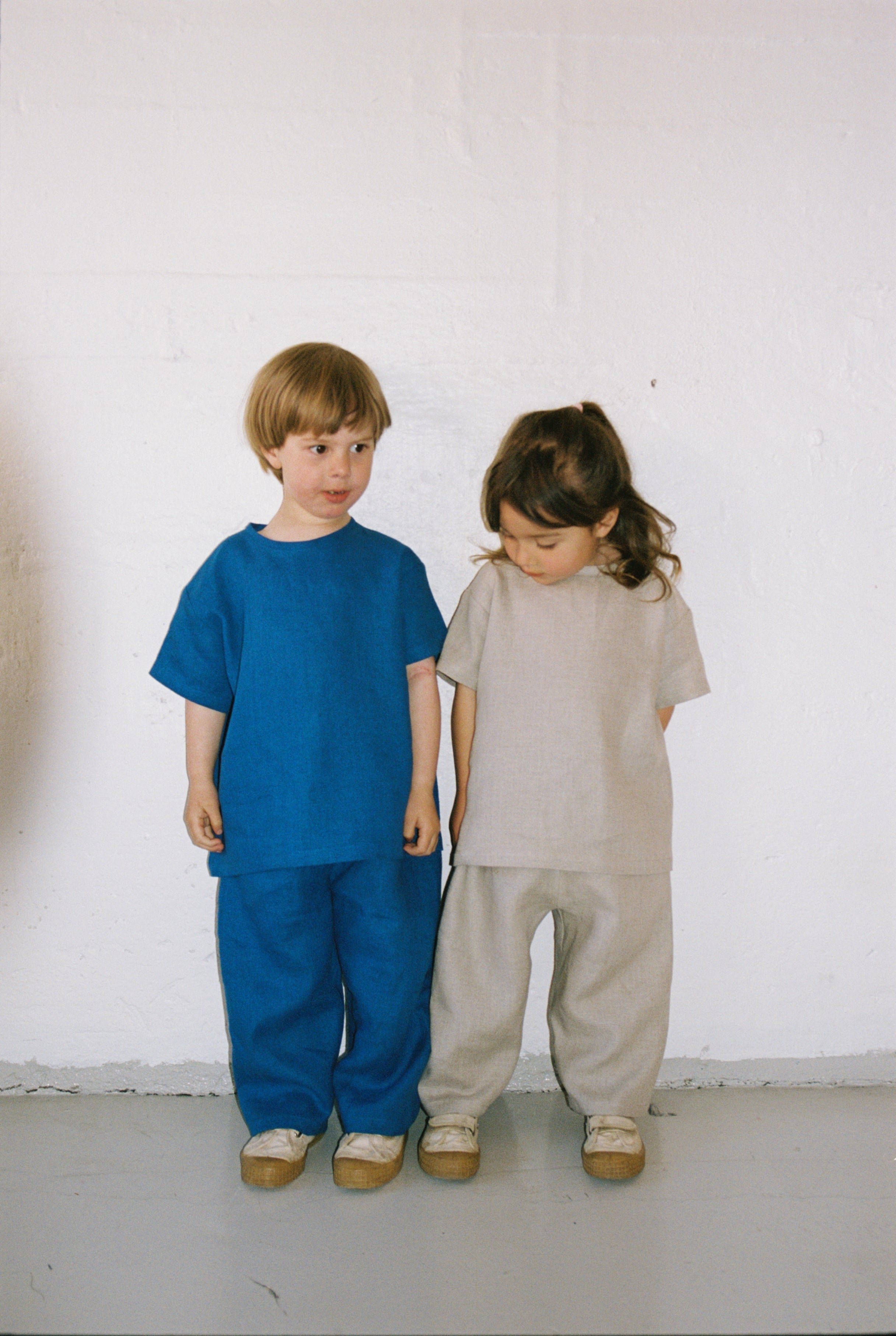 Vi bruker lin hele året. Den vide passformen er perfekt som et svalt lag for å beskytte mot solen i sommerhalvåret eller for å kombinere med flere plagg under når temperaturen synker. Fordi lin er slitesterkt og naturlig flekkbestandig fungerer den også godt som beskyttende lag over mer sarte materialer som fort får hull og flekker.