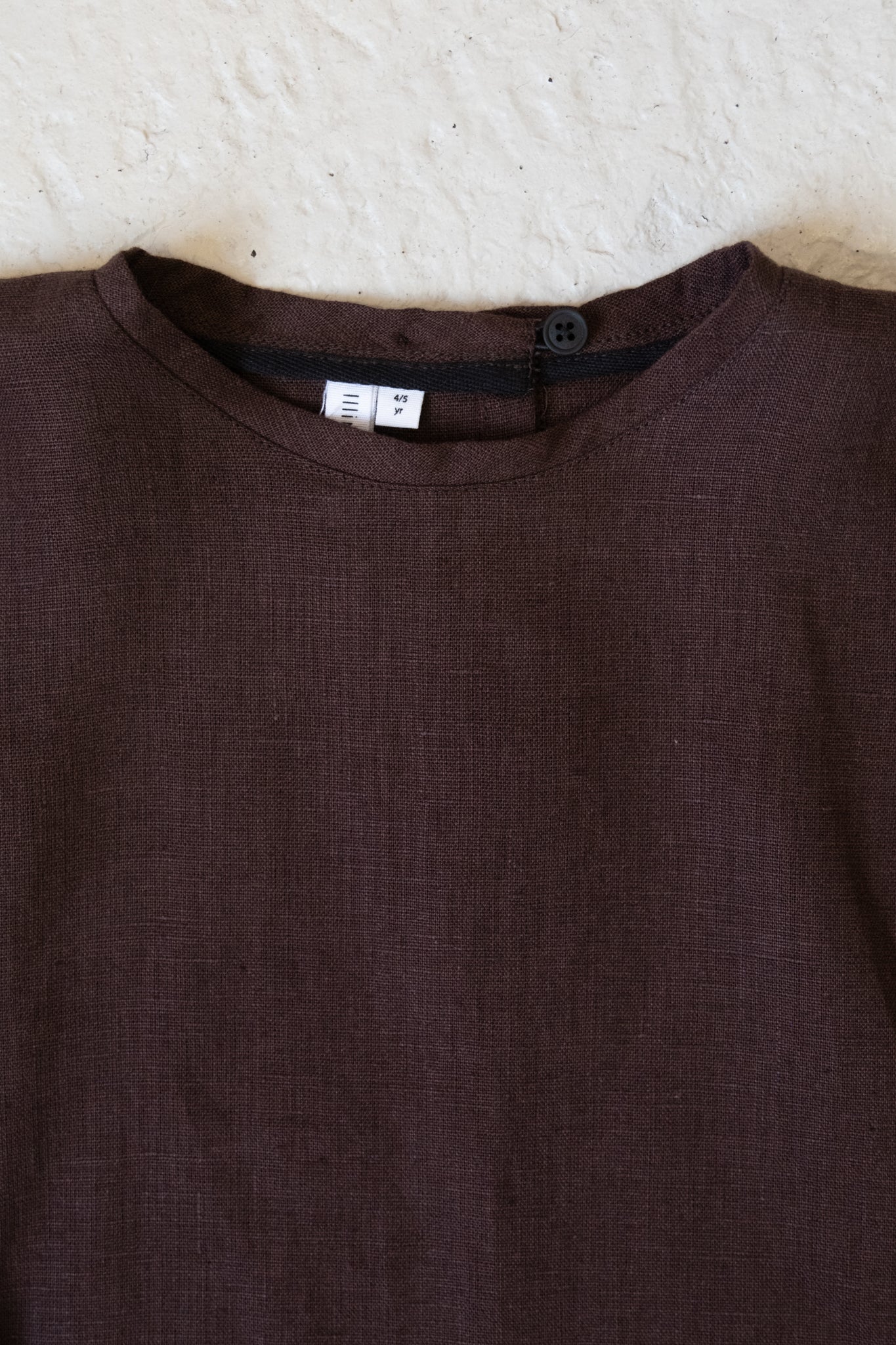 Vi bruker lin hele året. Den vide passformen er perfekt som et svalt lag for å beskytte mot solen i sommerhalvåret eller for å kombinere med flere plagg under når temperaturen synker. Fordi lin er slitesterkt og naturlig flekkbestandig fungerer den også godt som beskyttende lag over mer sarte materialer som fort får hull og flekker.