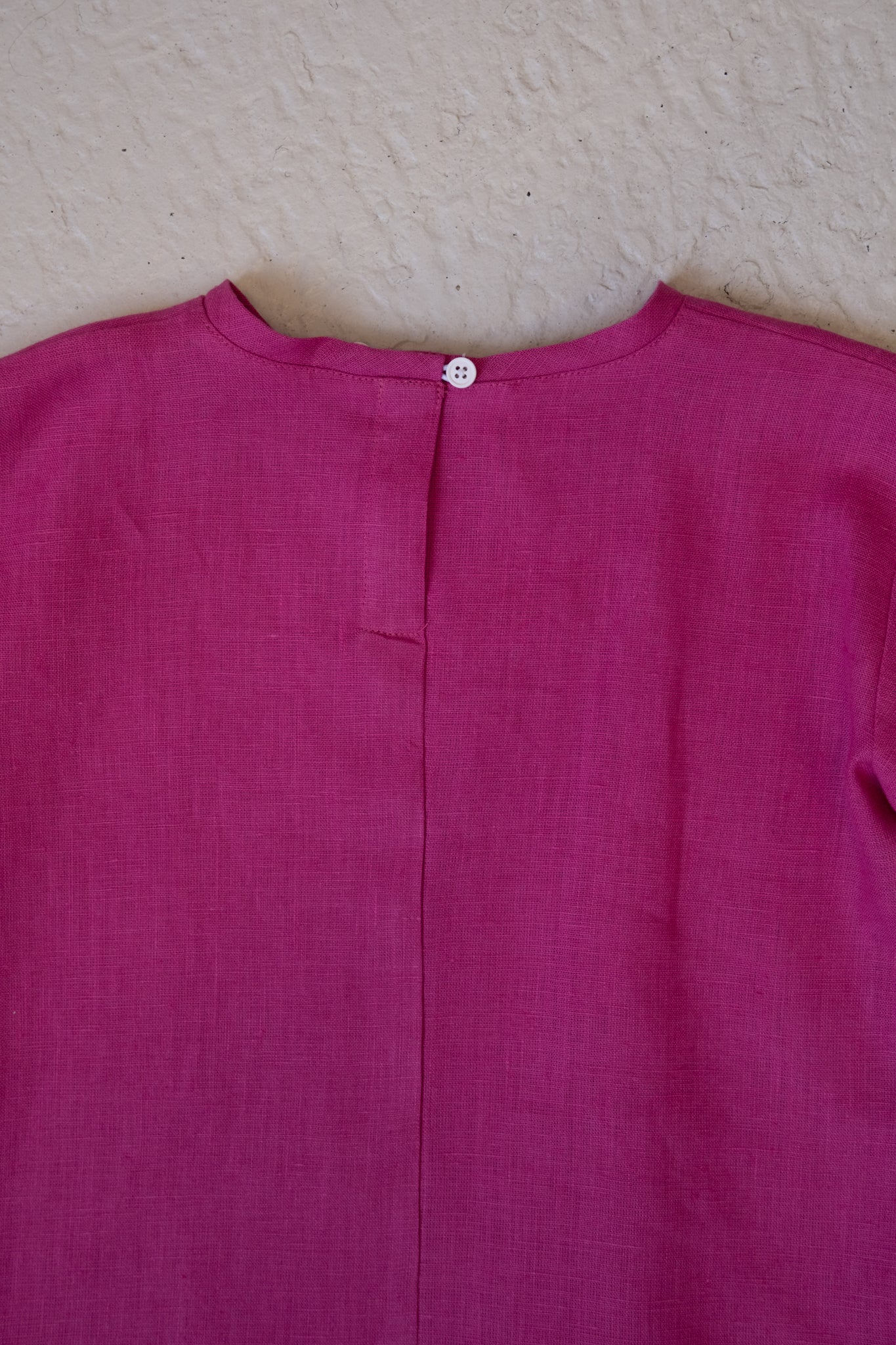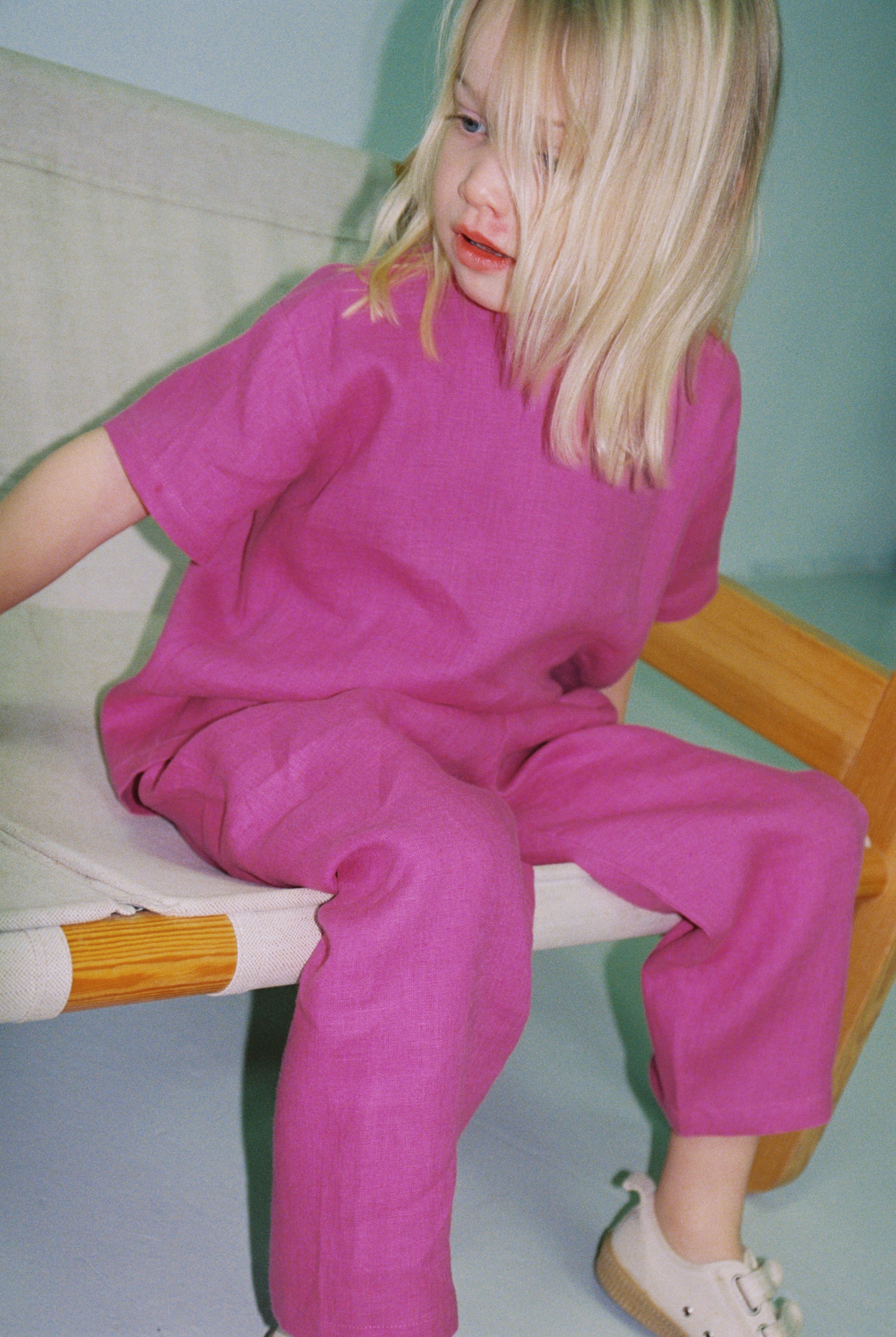 Vi bruker lin hele året. Den vide passformen er perfekt som et svalt lag for å beskytte mot solen i sommerhalvåret eller for å kombinere med flere plagg under når temperaturen synker. Fordi lin er slitesterkt og naturlig flekkbestandig fungerer den også godt som beskyttende lag over mer sarte materialer som fort får hull og flekker.
