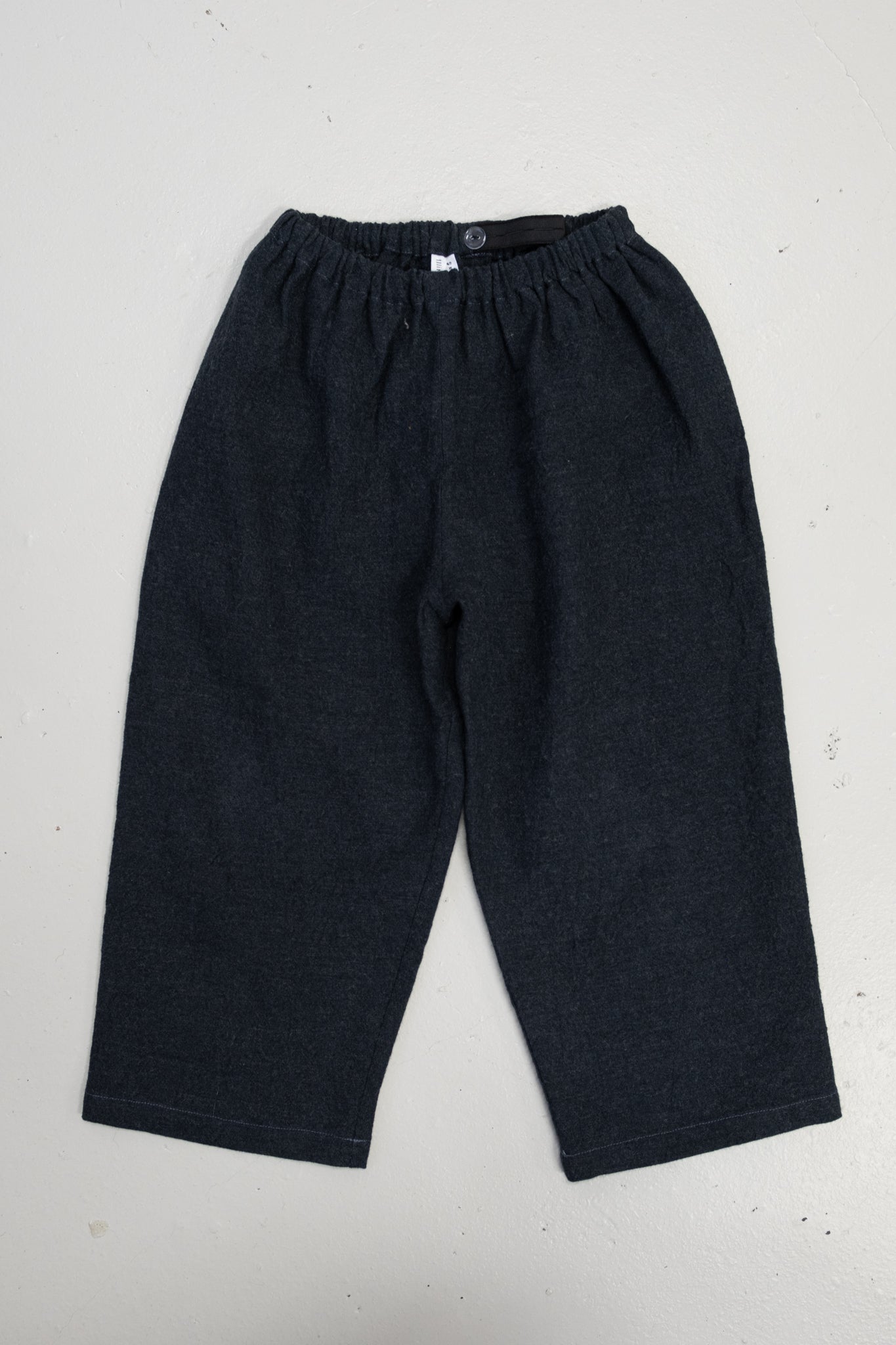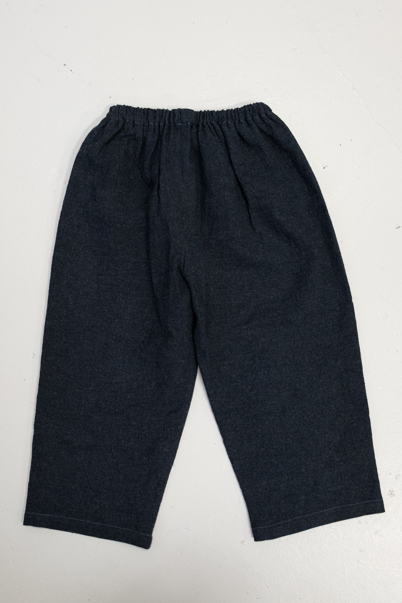 Wide Trousers er en bukse med vid passform som gir plass til bevegelse og lek. Sammenlignet med Basic Trousers er denne buksen ikke ment å skulle brettes opp. Når barnet begynner å bruke buksene er de i fotlengde, og i takt med at barnet vokser blir buksene mer cropped. Justerbar strikk i livet som kan tilpasses barnets mål.